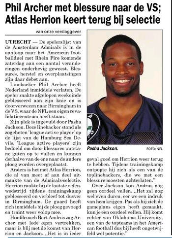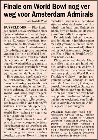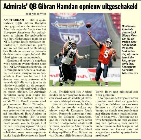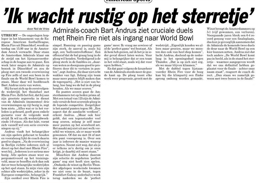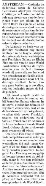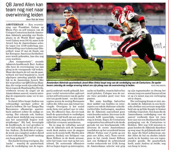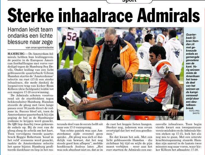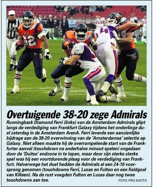 Amsterdam Admirals nemen Revanche op Thunder. 38-31 Volledige Bericht